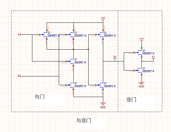 中国面包师贴吧-楼主(阅:1241/回:0)由氧化锌,镓,锑组成PN节的集成电路由氧化锌,镓,锑组成PN节的集成电路 由氧化锌,镓,锑组成PN节的集成电路 氧化锌制作避雷器是非常成熟的技术,但是我计划用氧化锌制作PN节,制造数字开关电路。这就需要在氧化锌中掺杂各种分散剂,扩散剂,将镓元素扩散到氧化锌中形成P型半导体,将锑元素扩散到氧化锌中形成N型半导体。将500g氧化锌溶解到1%质量分数的碳酸,5%质量分数的磷酸中,再将10g碳酸钠,10g碳酸钾,10g碳酸钙,10g碳酸镁,10g碳酸锌,10g磷酸二氢钠,10g磷酸二氢钾,10g磷酸钙,10g磷酸镁,10g磷酸锌。10氧化镓加入到上面的酸溶液中,氧化锌和氧化镓在分散剂,扩散剂碳酸钠,碳酸钾,碳酸钙,碳酸镁,碳酸锌,磷酸二氢钠,磷酸二氢钾,磷酸钙,磷酸镁,磷酸锌的作用下溶解到碳酸和磷酸中。然后加热上述溶液,等到沉淀物就是分散有氧化镓的氧化锌。用这个沉淀物可以做P型半导体材料。 将500g氧化锌溶解到1%质量分数的氢氧化钠,1%质量分数的氢氧化钾中,再将10g碳酸钠,10g碳酸钾,10g碳酸钙,10g碳酸镁,10g碳酸锌,10g磷酸二氢钠,10g磷酸二氢钾,10g磷酸钙,10g磷酸镁,10g磷酸锌。10氧化锑加入到上面的碱溶液中,氧化锌和氧化锑在分散剂,扩散剂碳酸钠,碳酸钾,碳酸钙,碳酸镁,碳酸锌,磷酸二氢钠,磷酸二氢钾,磷酸钙,磷酸镁,磷酸锌的作用下溶解到氢氧化钾和氢氧化钠中。然后加热上述溶液,等到沉淀物就是分散有氧化锑的氧化锌。用这个沉淀物可以做N型半导体材料。 把上述P型半导体材料,用研磨机粉碎成1mm直径的粉末,再用 旋球振动筛充分搅拌,再用1600N干粉自动成型液压机压成直径20mm高30mm的圆柱体,再在隧道式电阻炉里面保持350摄氏度,煅烧6小时,最后形成浅绿色结晶圆柱体,再在圆柱体外部处上下表面外涂上白色高阻釉,用烤箱70摄氏度烘干,再在隧道式电阻炉里面保持850摄氏度,煅烧6小时,最后形成绿色结晶圆柱体,再用磨床将这个圆柱体上下表面抛光,在用喷铝机将上下表面喷铝,再在圆柱体外部处上下表面外涂上黑色绝缘釉,用烤箱70摄氏度烘干,再在隧道式电阻炉里面保持1100摄氏度,煅烧6小时,最后形成深绿色结晶圆柱体。这样就制成了一个P型半导体。 把上述N型半导体材料,用研磨机粉碎成1mm直径的粉末,再用 旋球振动筛充分搅拌,再用1600N干粉自动成型液压机压成直径20mm高30mm的圆柱体,再在隧道式电阻炉里面保持350摄氏度,煅烧6小时,最后形成浅绿色结晶圆柱体,再在圆柱体外部处上下表面外涂上白色高阻釉,用烤箱70摄氏度烘干,再在隧道式电阻炉里面保持850摄氏度,煅烧6小时,最后形成绿色结晶圆柱体,再用磨床将这个圆柱体上下表面抛光,在用喷铝机将上下表面喷铝,再在圆柱体外部处上下表面外涂上黑色绝缘釉,用烤箱70摄氏度烘干,再在隧道式电阻炉里面保持1100摄氏度,煅烧6小时,最后形成深绿色结晶圆柱体。这样就制成了一个N型半导体。下图是一个与非门的电路图 它的PN节分布如下图