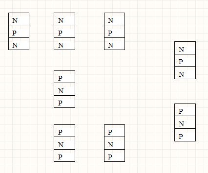 按照上图排布上面制作的P型半导体和N型半导体。最后再用电缆把这些PN节连接起来,如下图所示