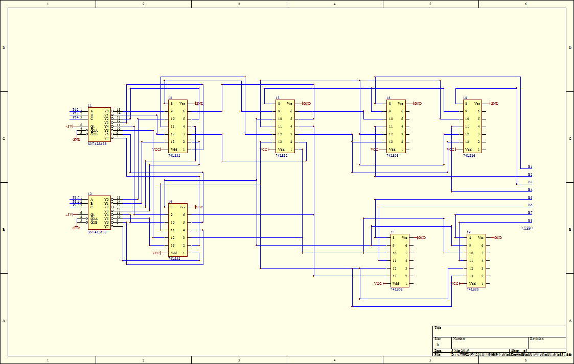 图2中,11.74LS138译码器,12.74LS138译码器,13.74LS32或门,14.74LS32或门,15.74LS32或门,16.74LS08与门,17.74LS08与门,18.74LS08与门,19.74LS86异或门。